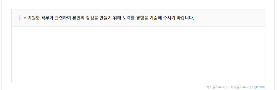 * 지원한 직무와 관련하여 본인의 강점을 만들기 위해 노력한 경험을 기술해 주시기 바랍니다. (최대 700자)