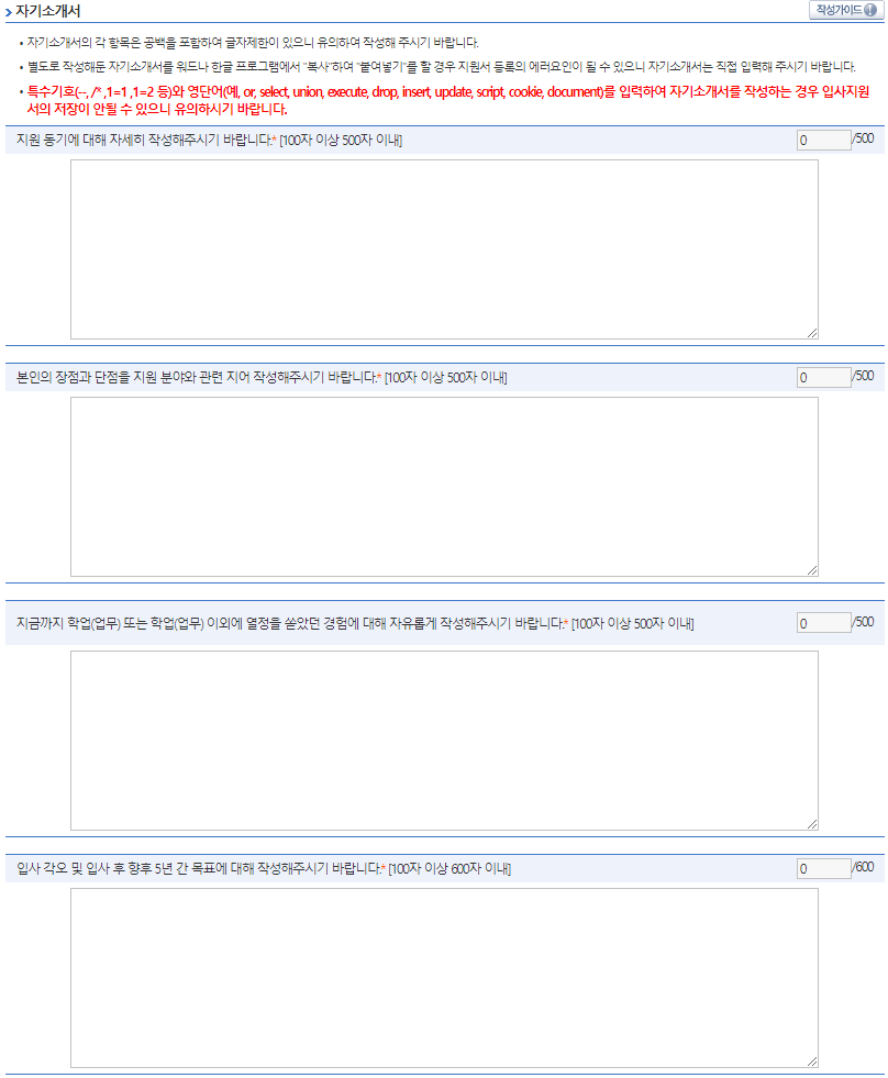 ● 지원 동기에 대해 자세히 작성해주시기 바랍니다.* [100자 이상 500자 이내]