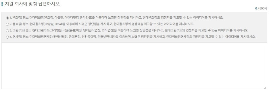 2. 홈쇼핑) 평소 현대홈쇼핑(TV방송, Hmall)을 이용하며 느꼈던 장단점을 제시하고, 현대홈쇼핑의 경쟁력을 제고할 수 있는 아이디어를 제시하시오. (800자 이내)