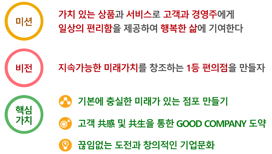 [코리아세븐 미션/비전/가치관]