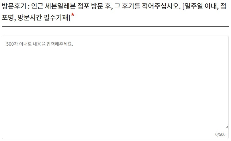 ■ 방문후기 : 인근 세븐일레븐 점포 방문 후, 그 후기를 적어주십시오. [일주일 이내, 점포명, 방문시간 필수기재]