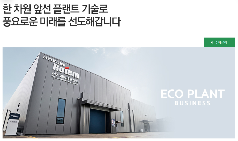 에코플랜트사업은 높은 기술력과 시공능력을 바탕으로 국내외 다수의 철강, 자동차 생산인프라 EPC공사를 성공적으로 수행해왔습니다. 더 나아가 스마트팩토리 및 스마트물류사업에 진출하여 4차산업 미래기술 개발에 앞장서고 있으며 수소충전소, 수소추출기 등 수소인프라구축에 필수적인 사업을 수행함으로써 글로벌 수소경제 실현과 수소사회로의 진입을 선도하고 있습니다.