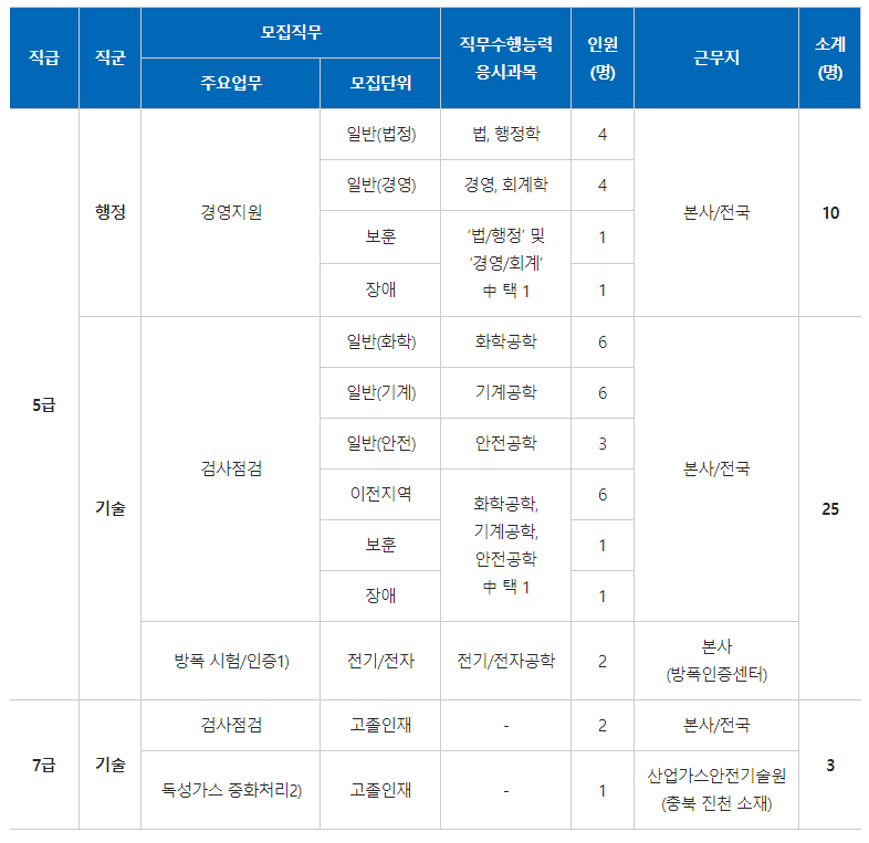 1~2) ‘방폭 시험/인증’ 및 ‘독성가스 중화처리’ 직무의 최종합격자는 해당 부서에서 5년간 의무 근무가 가능하여야 함