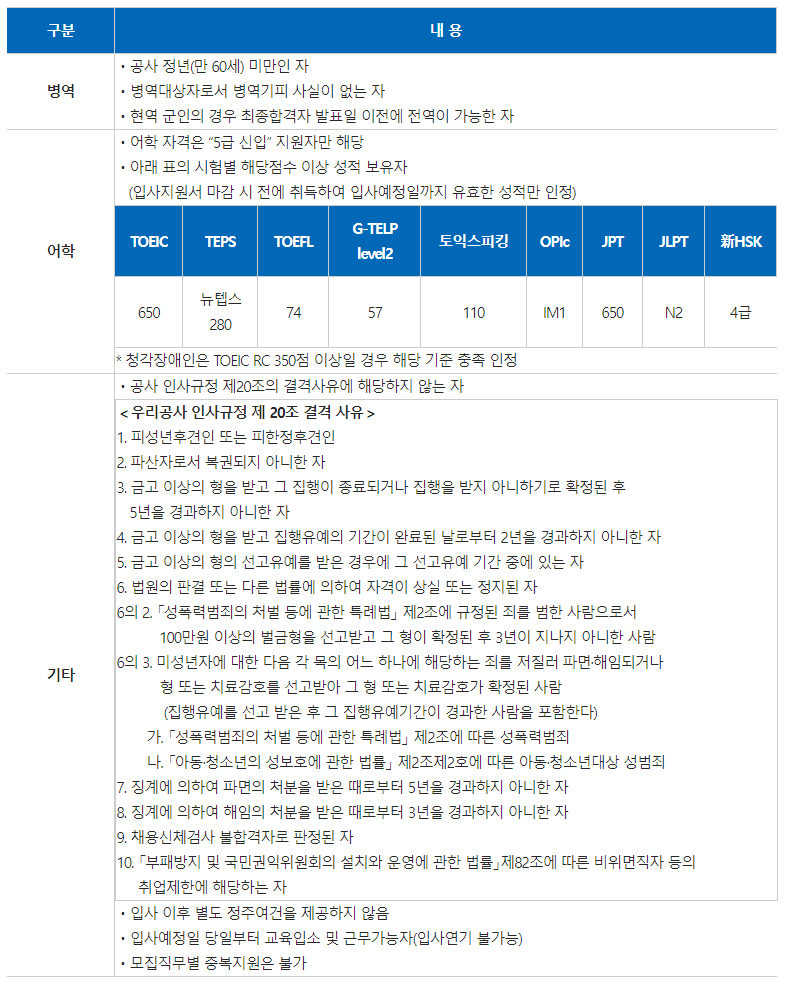 * 경력직무의 최종합격자는 근무예정부서에서 5년간 의무 근무가 가능하여야 함