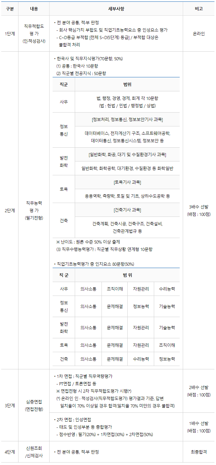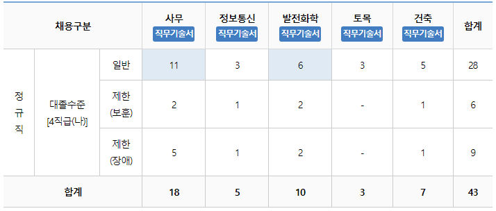 □ 적용분야 : 사무(대졸-일반), 발전화학(대졸-일반) (해당공고에서 최종 선발예정인원이 6인 이상인 분야)