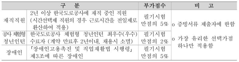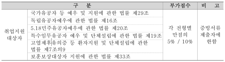 - 어학, 역량기술서, 융합인재․기술직 필수자격증, 서류전형 공통자격증, 부가가점, 취업지원대상자, 장애인,