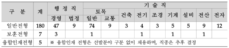 o 일반전형 : 행정직 50배수, 기술직 30배수 * 동점자 전원 선발