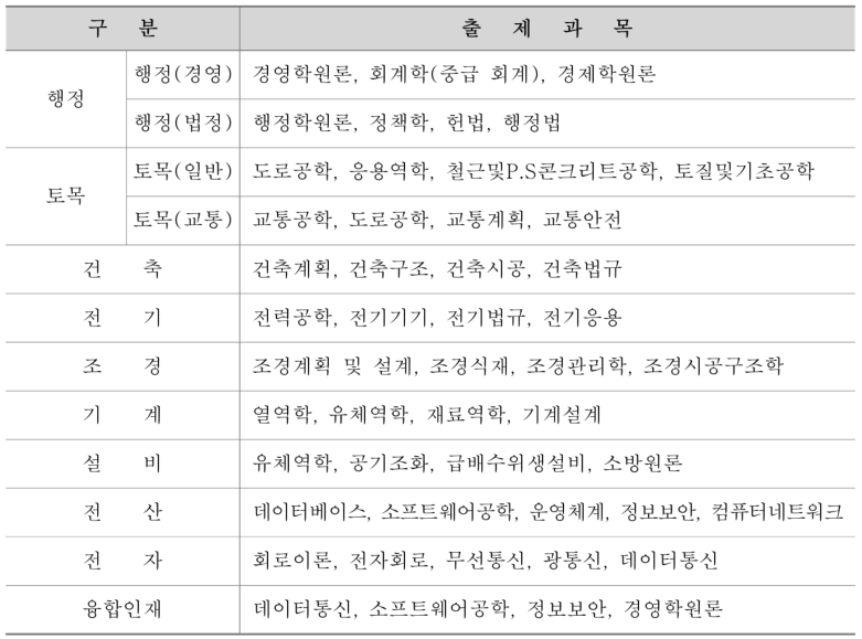 행정(경영) 136.94 : 1 / 행정(법정) 84.75 : 1 / 토목(일반) 12.52 : 1 / 토목(교통) 15.89 : 1 / 건축 103 : 1 /