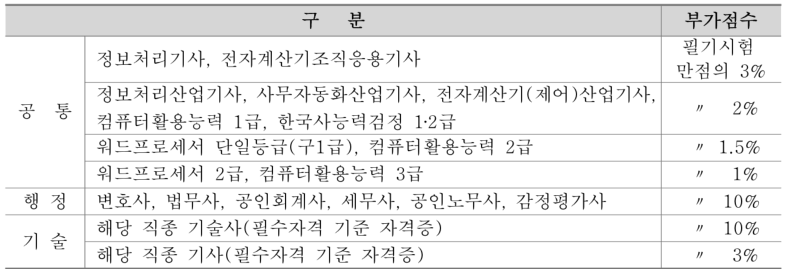 ※ 예) 전산 지원자가 정보처리기사, 사무자동화산업기사 보유 시