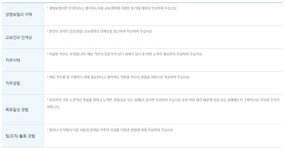 · 회사의 주요 사업 분야인 생명보험에 대해서 알고 있는 기본적인 정보를 바탕으로 자신의 견해를 연결해서 설명