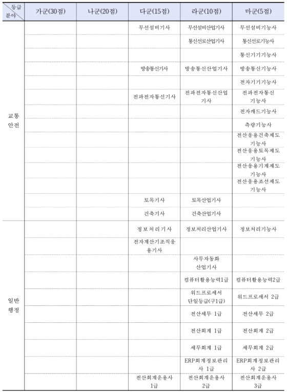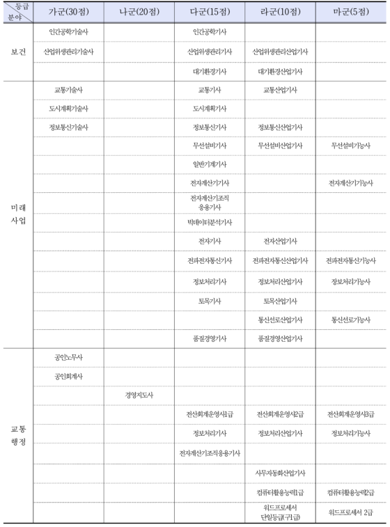 -전공(분야별 대졸 관련 전공 및 기사등급 자격증 수준) 50문항