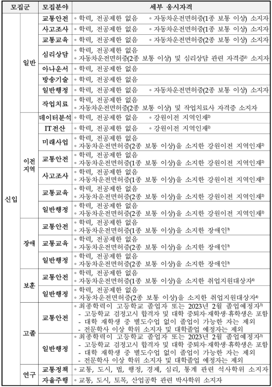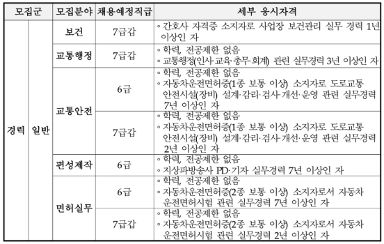※ 필기시험 관련 연구전형 자율주행(5급) 모집분야는 전공시험, 직업기초능력시험 생략