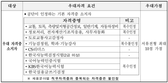 *신입직 모집분야 지원자에 한해 적용되며, 2개 이상 중복될 경우 유리한 1가지만 인정