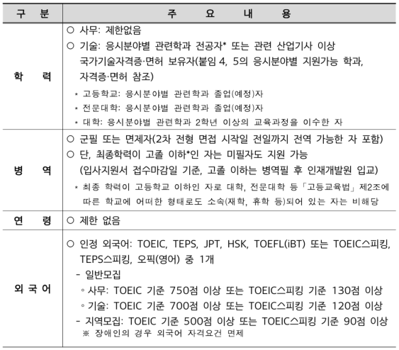 고급자격 및 면허 보유자 : 변호사 / 변리사 / 공인회계사 / 해당응시분야 기술사