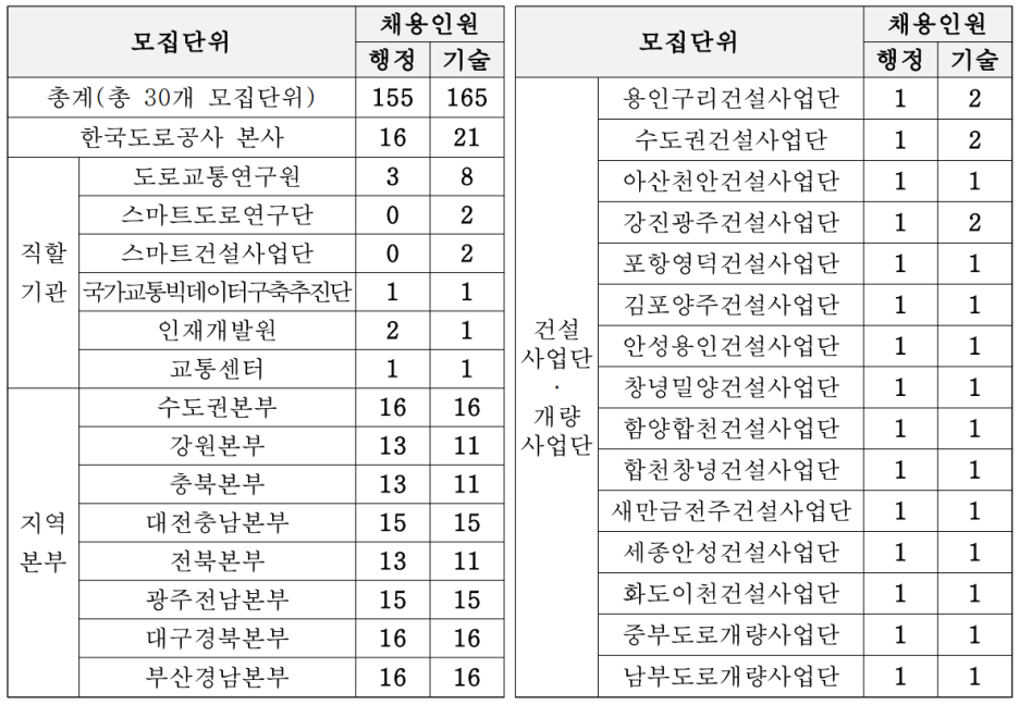 ※ 「국가유공자 등 예우 및 지원에 관한 법률」 제31조 등에 의거 행정/기술 모집 단위별 채용인원이 3인 이하인 경우 취업지원 대상자 가점 미부여