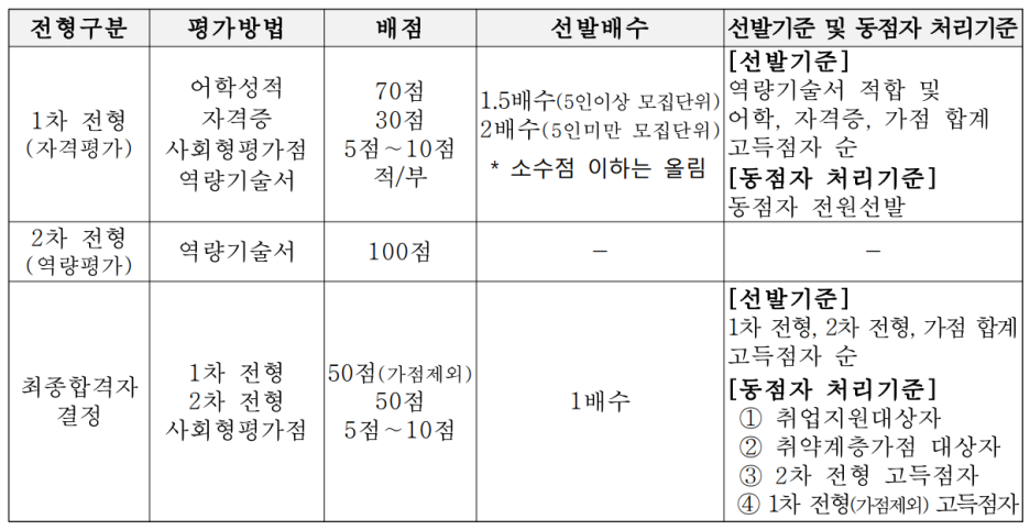 □ 우대사항 : 사회형평적 인력 전형별 가점 부여(1차 전형 및 최종 합격자 결정 시)