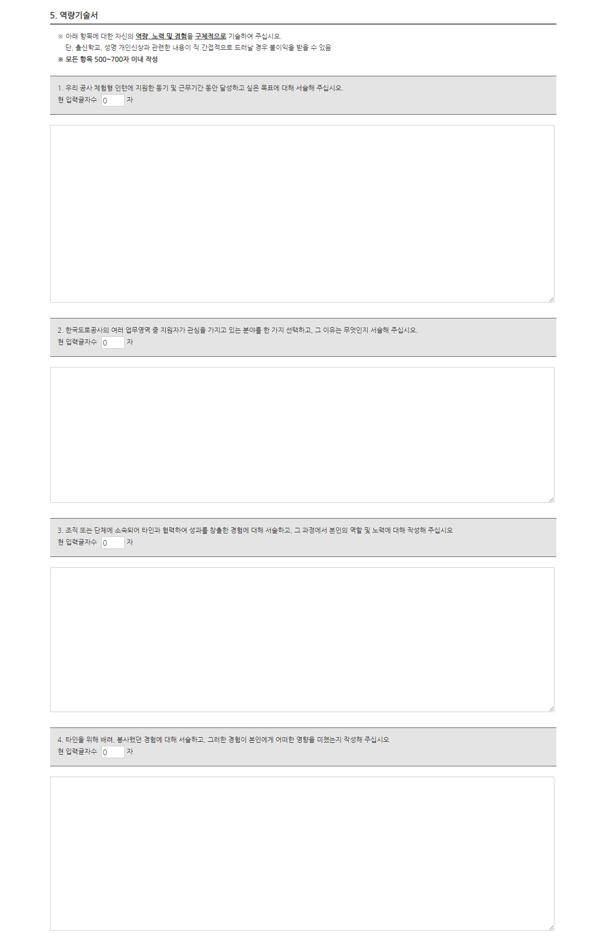 1. 우리 공사 체험형 인턴에 지원한 동기 및 근무기간 동안 달성하고 싶은 목표에 대해 서술해 주십시오. (500~700자 이내)