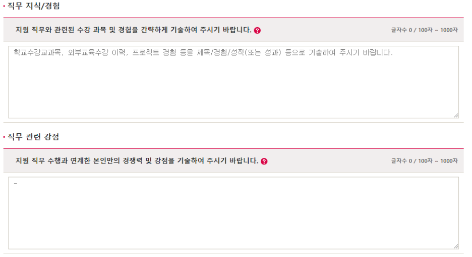· 지원하는 직무에 맞는 적합성을 통해서 회사에 지원한 동기와 입사 후 포부를 연결해서 작성