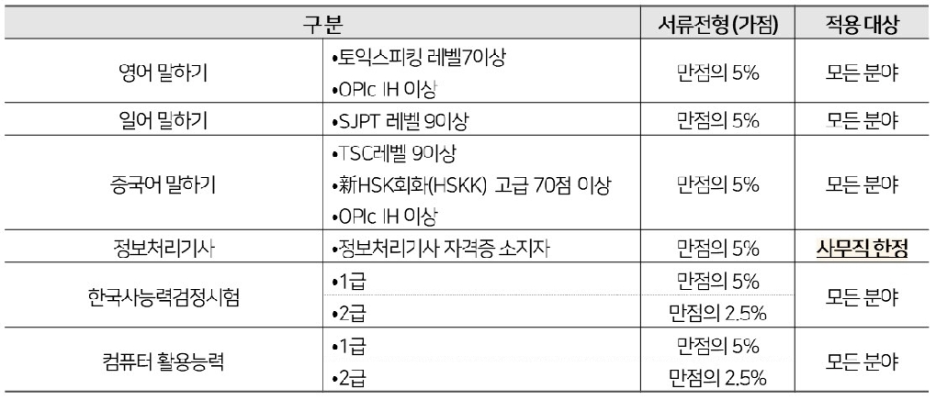 - 직무 역량 관련 우대사항(중복가점 인정)