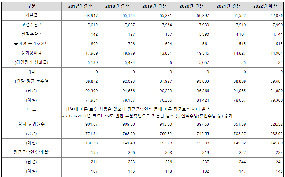 한국마사회 직원 평균 보수(정규직-수당 별도)