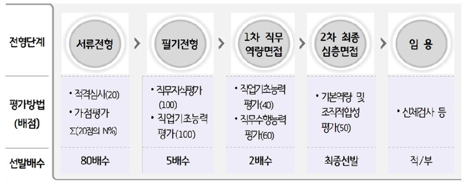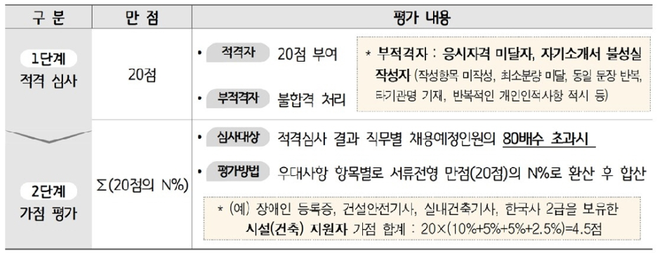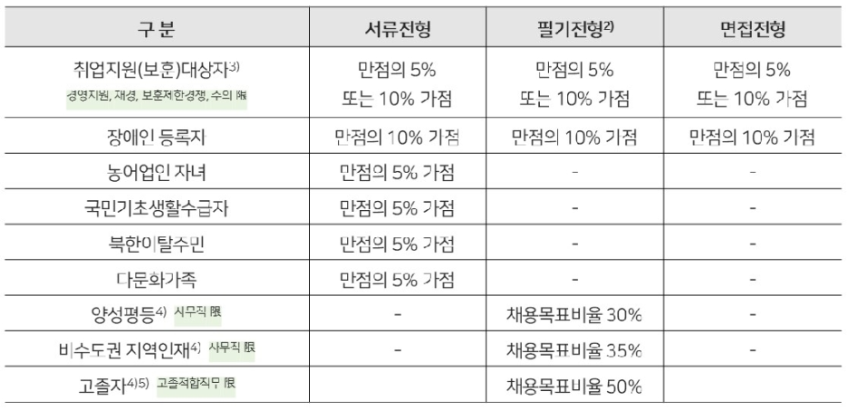 · 서류전형은 중복 가점을 인정하나 필기/면접 전형은 응시자에게 가장 유리한 가점 하나만 적용