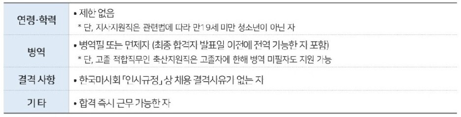 □ 채용분야별 세부 응시자격