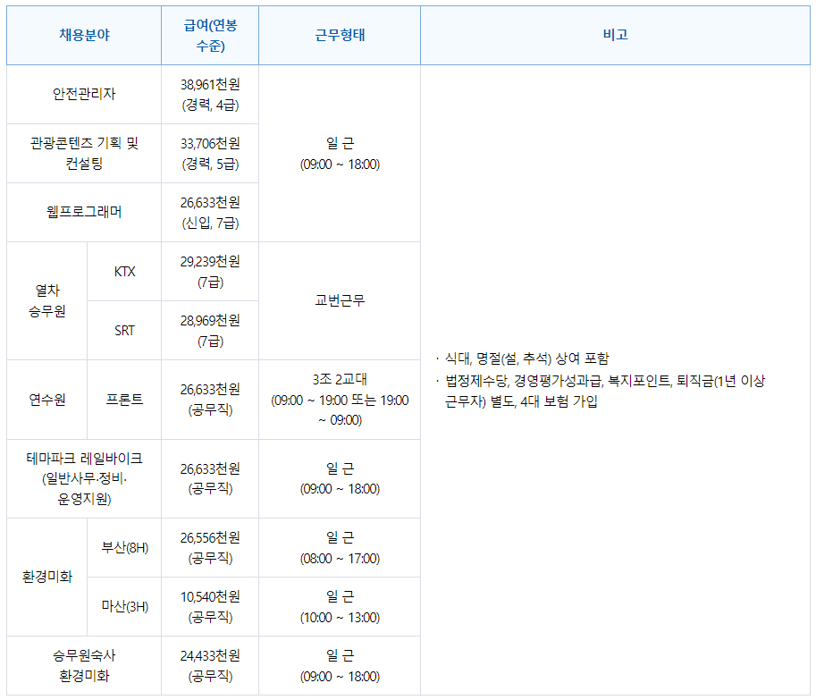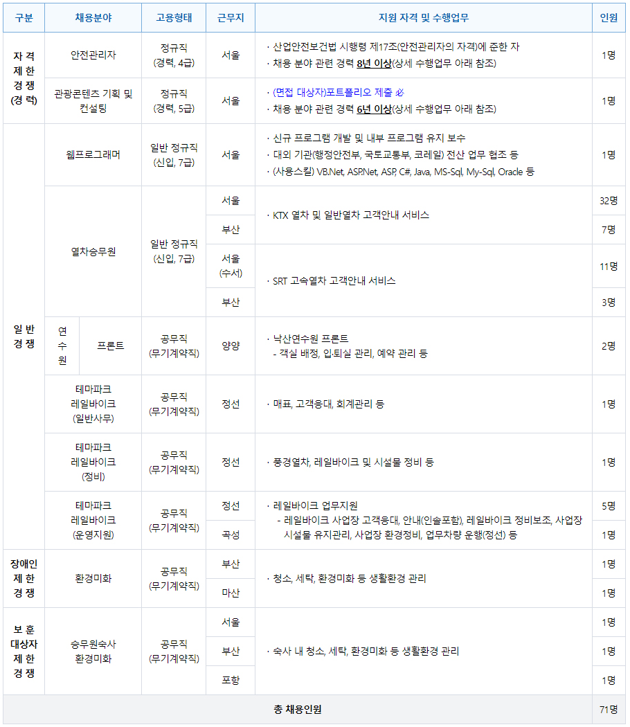 - 단, (장애인 제한)환경미화, (보훈대상자 제한)승무원숙사 환경미화 분야 : (임용일 기준) 만 18세 이상, 만 65세(정년) 미만