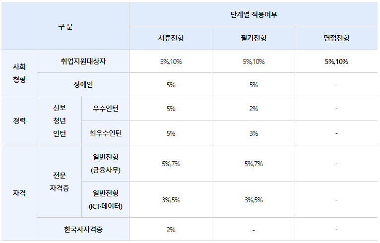 * 가점은 매 전형 단계별 만점을 기준으로 부여하며 세부 내용은 아래 참조