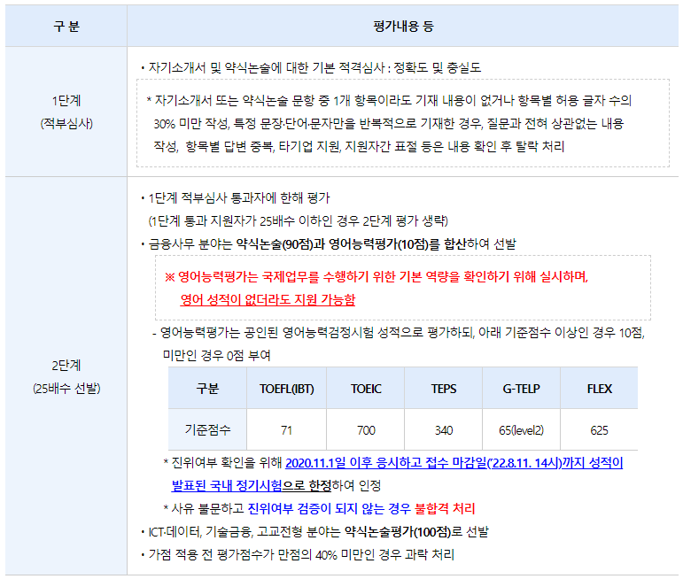 ㆍ평가대상 : (1단계) 입사지원자 전원, (2단계) 1단계 평가 통과자