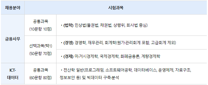 [합격 최저 점수는 금융사무 분야의 전공 과목별 비수도권(근무지역 : 전국) 기준임]
