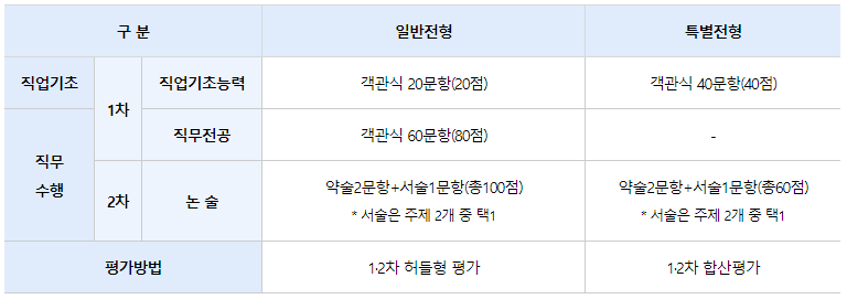 ㆍ 직무 전공 평가 : 직무수행 능력을 평가하기 위한 전공 시험 실시(일반 전형에 한함)