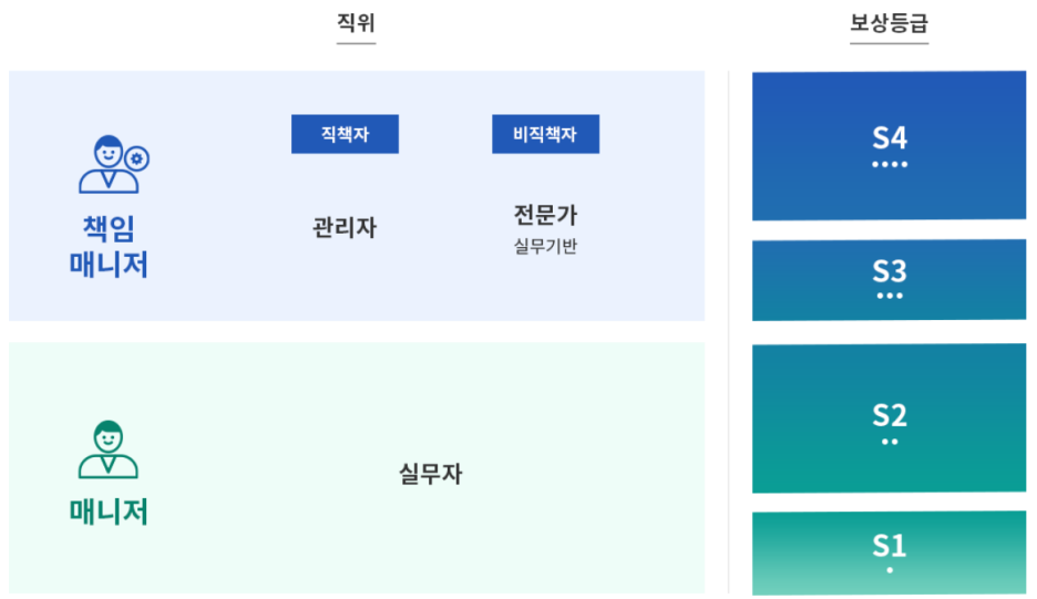 · 연공서열이 아닌 개인의 성과와 역량에 기반한 직위/보상등급체계