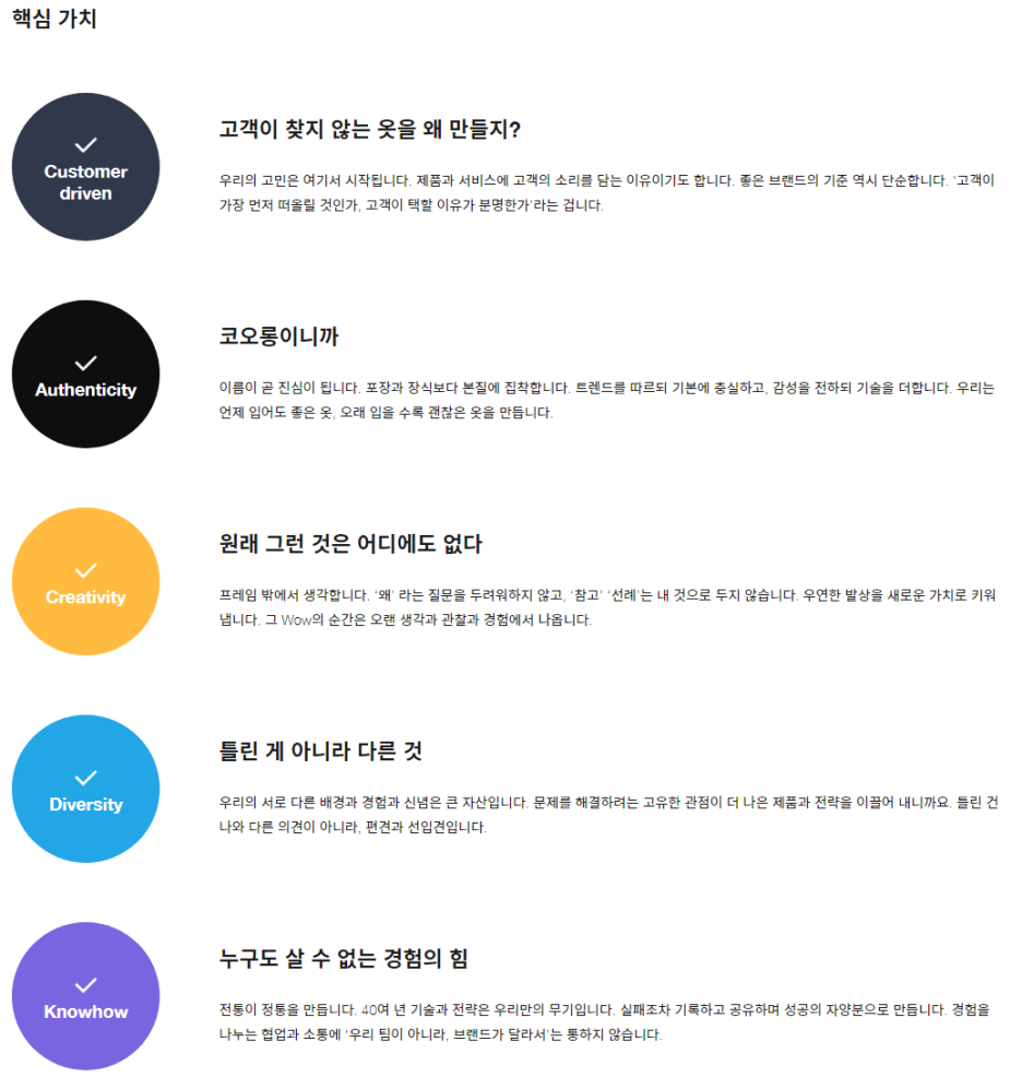 · 회사를 선택하는 자신만의 기준 등을 기반으로 코오롱인더스트리(주) FnC부문이 왜 이러한 기준에 적합한지를 설명