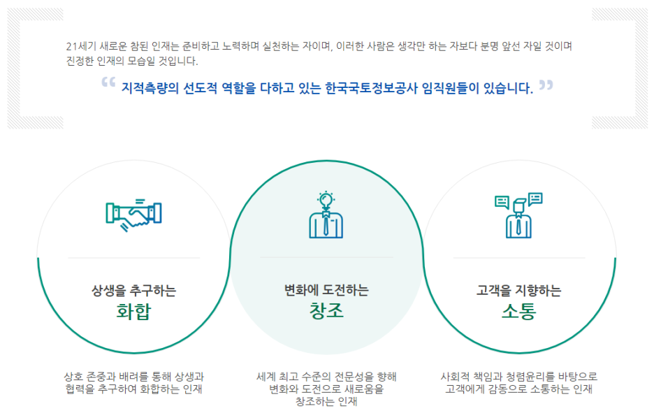 4. 한국국토정보공사의 인재상 중 어떤 항목이 본인과 일치한다고 생각하는지를 그 이유와 함께 기술해 주시기 바랍니다. (800자 이내)
