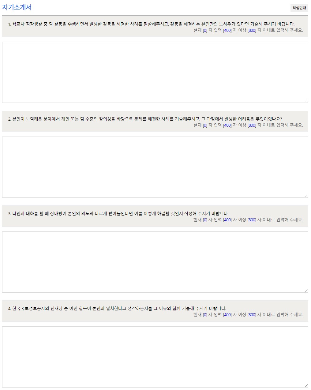 ※ 이 항목은 공사가 추구하는 인재상에 적합한 인재여부를 지원자의 생각과 경험을 통해서 평가