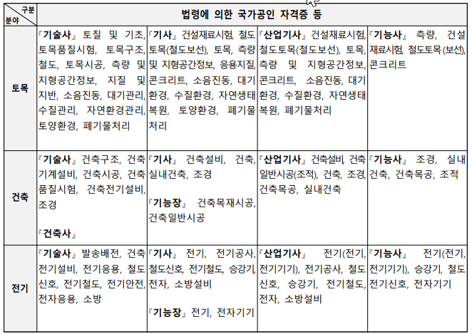 · 기술직(토목, 건축, 전기, 통신, 기계) : 공통/해당 직렬 분야 자격증 중 가장 유리한 가점 인정