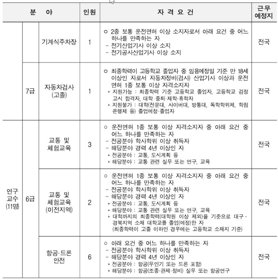 · 기술직 : 해당분야 기술사, 해당분야 박사, 고시 최종 합격자, KOLAS 공인기관 기술책임자(정/부), 고속철도차량 운전면허