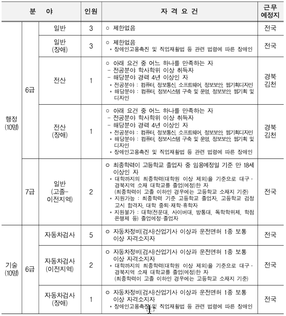 · 이전지역인재 기준(혁신도시 조성 및 발전에 관한 특별법) : 대학까지의 최종학력(대학원 이상 제외)을 기준으로 대구/경북지역 소재 대학교 졸업(예정)자로 한함