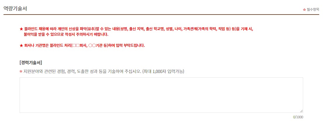 ○ 지원분야와 관련된 경험, 경력, 도출한 성과 등을 기술하여 주십시오.(최대 1,000자)