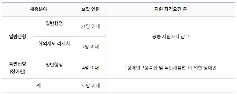 - 장애인 가점은 일반전형 내 “해외제도 리서치”에 대해서만 적용되며, 일반행정 지원자가 장애인 우대를 받고자 하는 경우 특별전형으로 지원