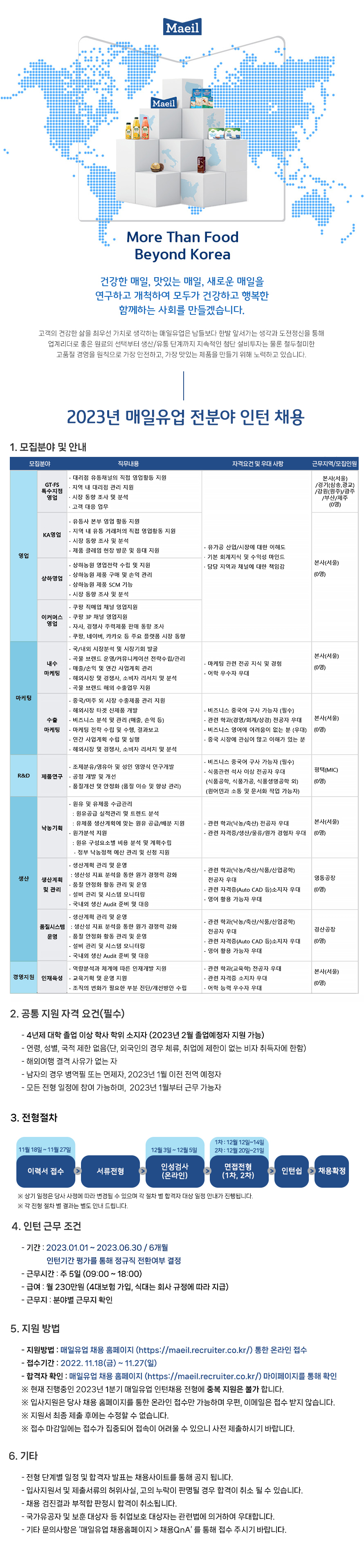 Maeil 매일유업 [영업/연구개발/생산물류/경영지원] 직무소개