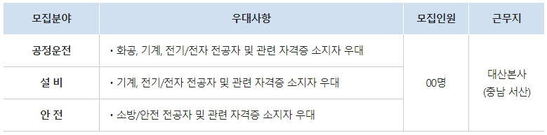 - 필기전형 실시 여부(일부 온라인 대체 등) 및 면접전형 일정은 추후 안내 예정