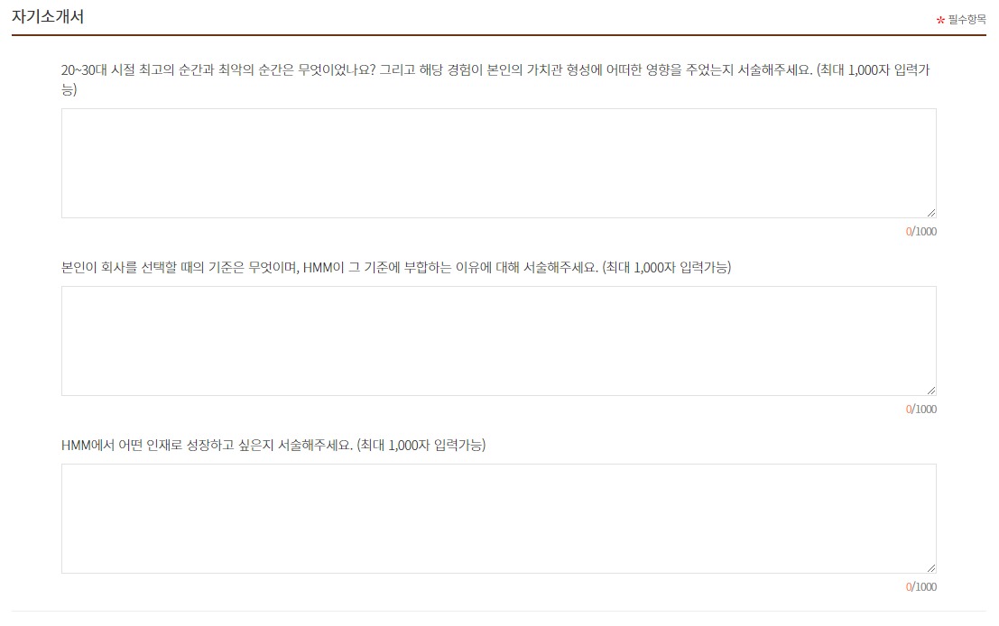 ○ 본인이 회사를 선택할 때의 기준은 무엇이며, HMM이 그 기준에 부합하는 이유에 대해 서술해주세요. (최대 1,000자)