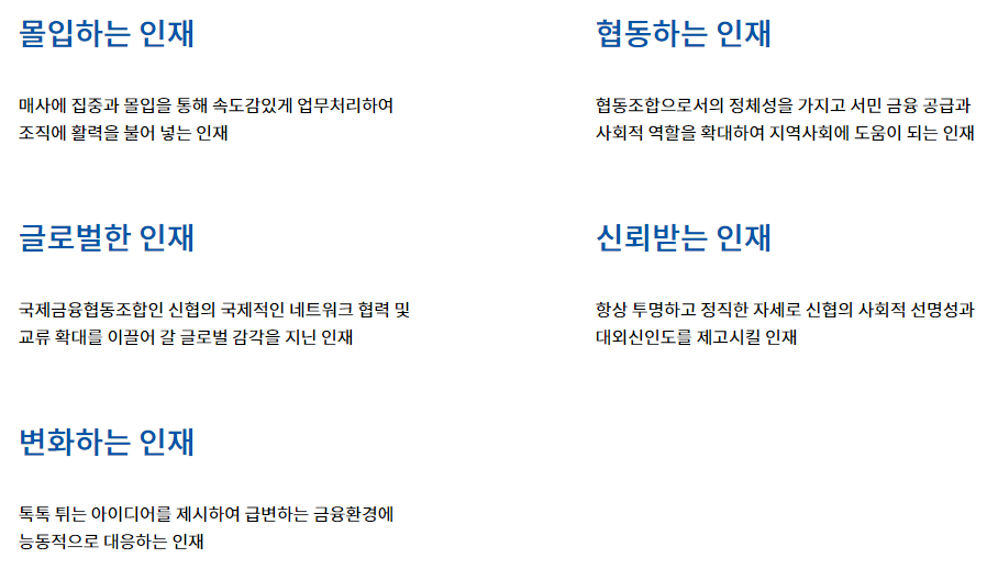 -또는 신협중앙회의 인재상 중 다른 항목에 없는 주제를 선정해서 작성하셔도 됩니다.