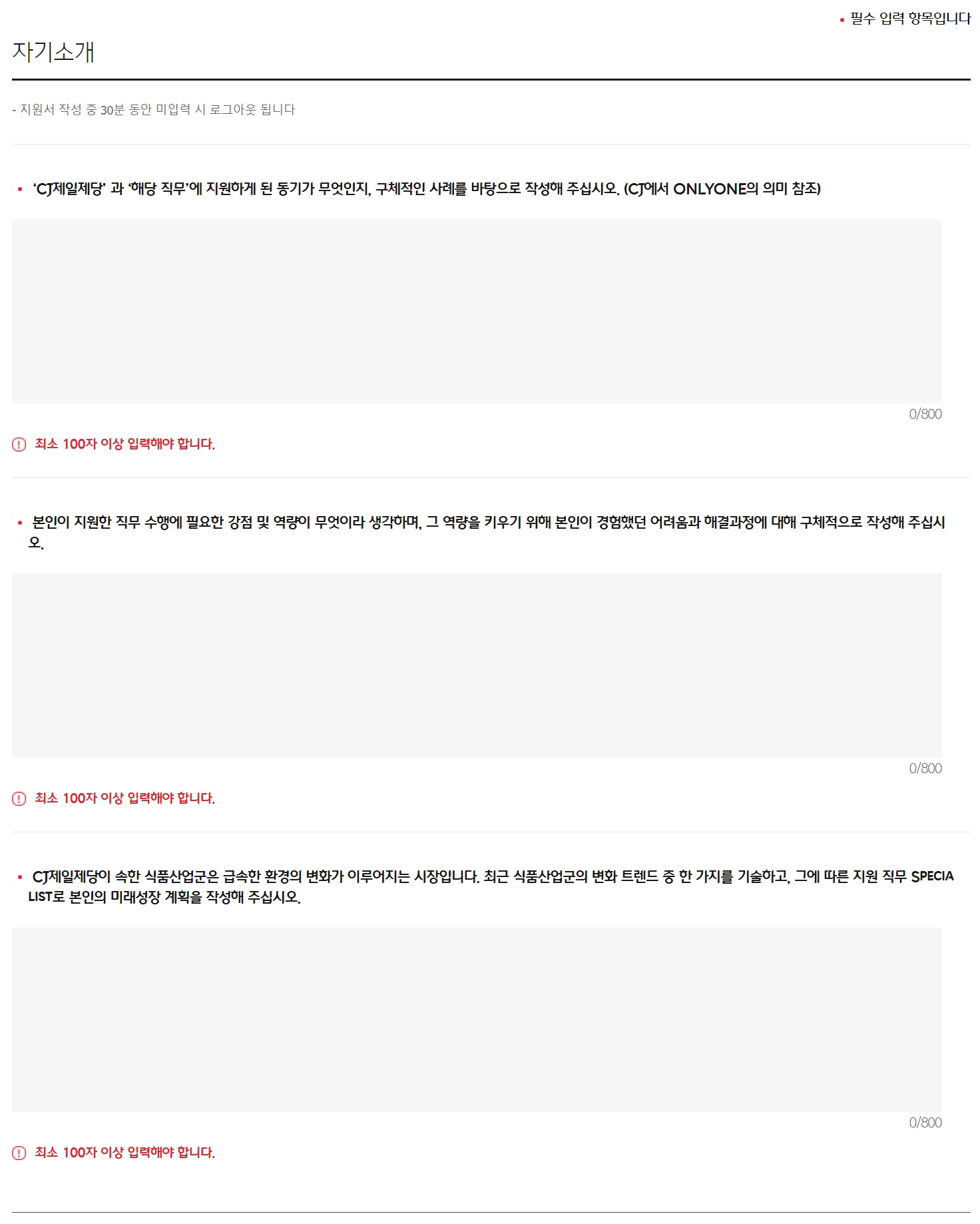 이 항목은 CJ제일제당과 지원 직무를 선택하게 된 이유에 대해서 작성