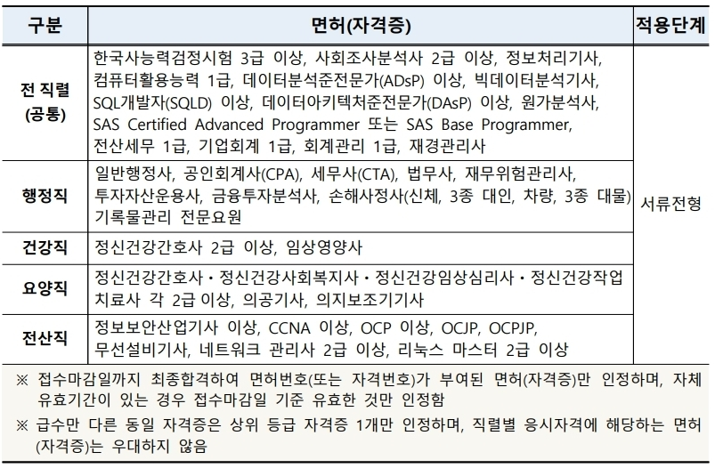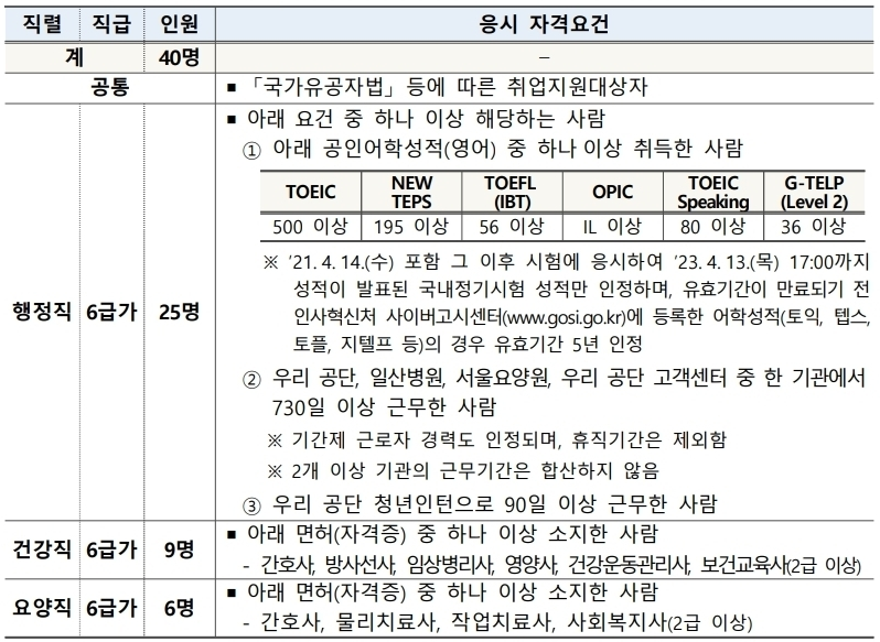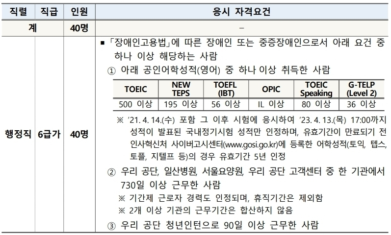 -자격요건 : 경력기준/공인어학성적/면허(자격증) 등 응시 자격요건