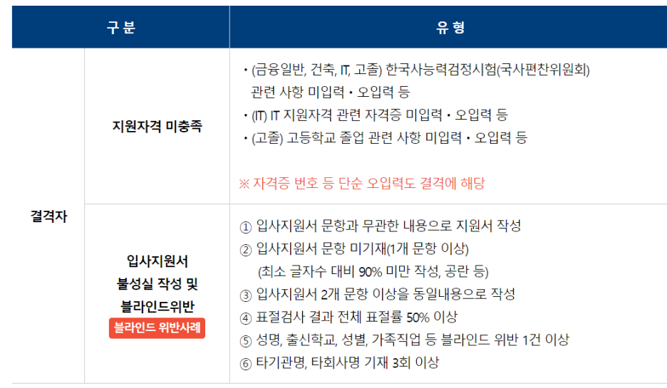 -지원자격 미충족 및 입사지원서 불성실 작성자 등을 제외한 입사지원자 전원 필기전형 응시 기회 부여