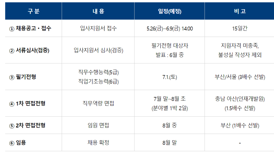 *5급 대졸(수준) : 직무수행능력(채용분야별 직무전공(90점) + 공사업무(10점))