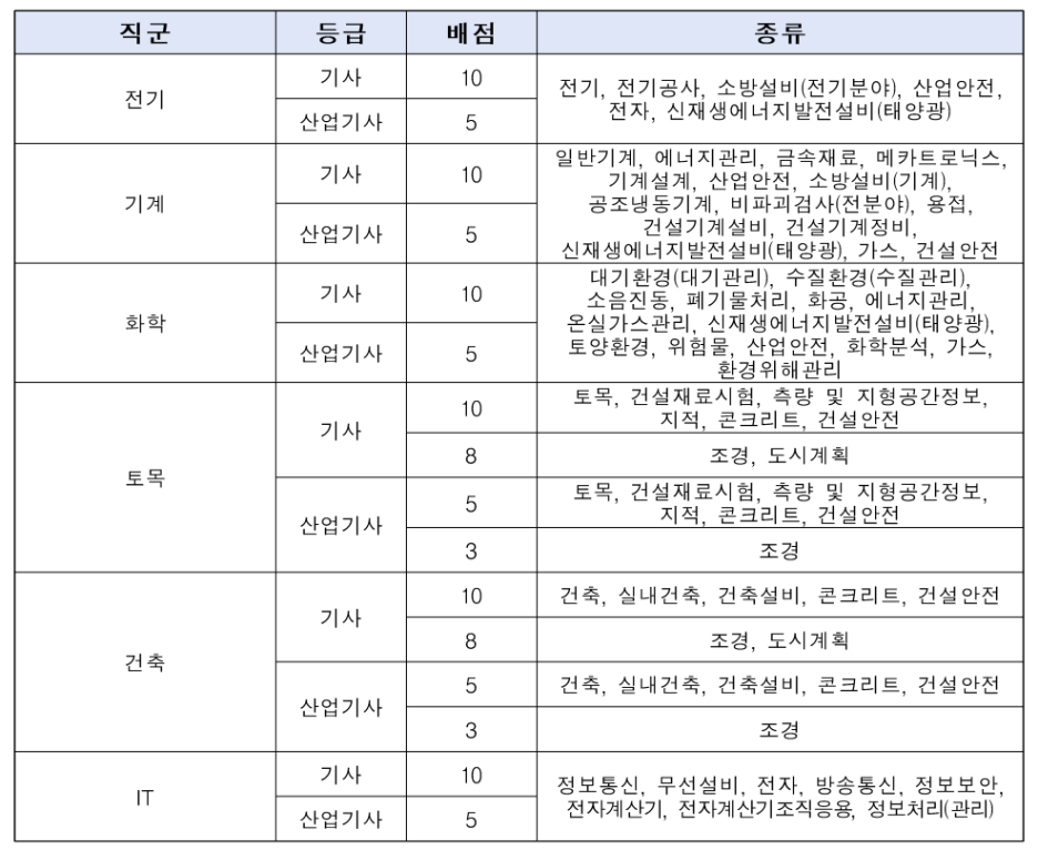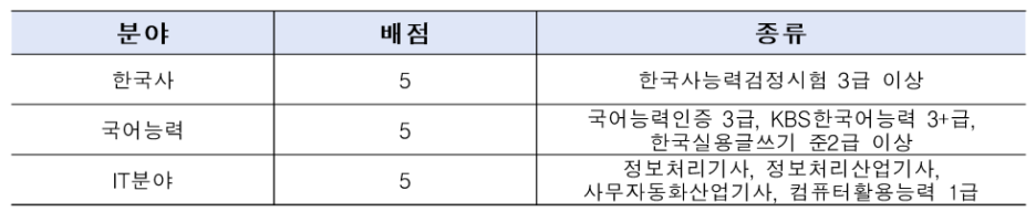 *동일분야 내 상위등급 1개만 인정 / IT 분야 지원자는 IT 자격증 가점 제외