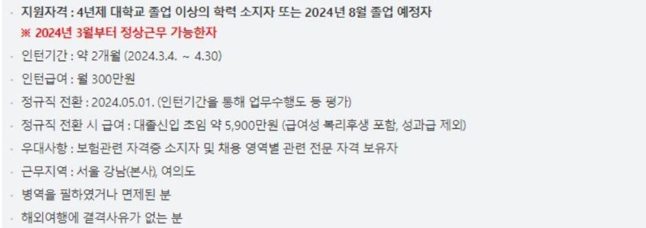 meritz 메리츠화재 24년(상) 대졸 채용연계형 인턴십 자기소개서